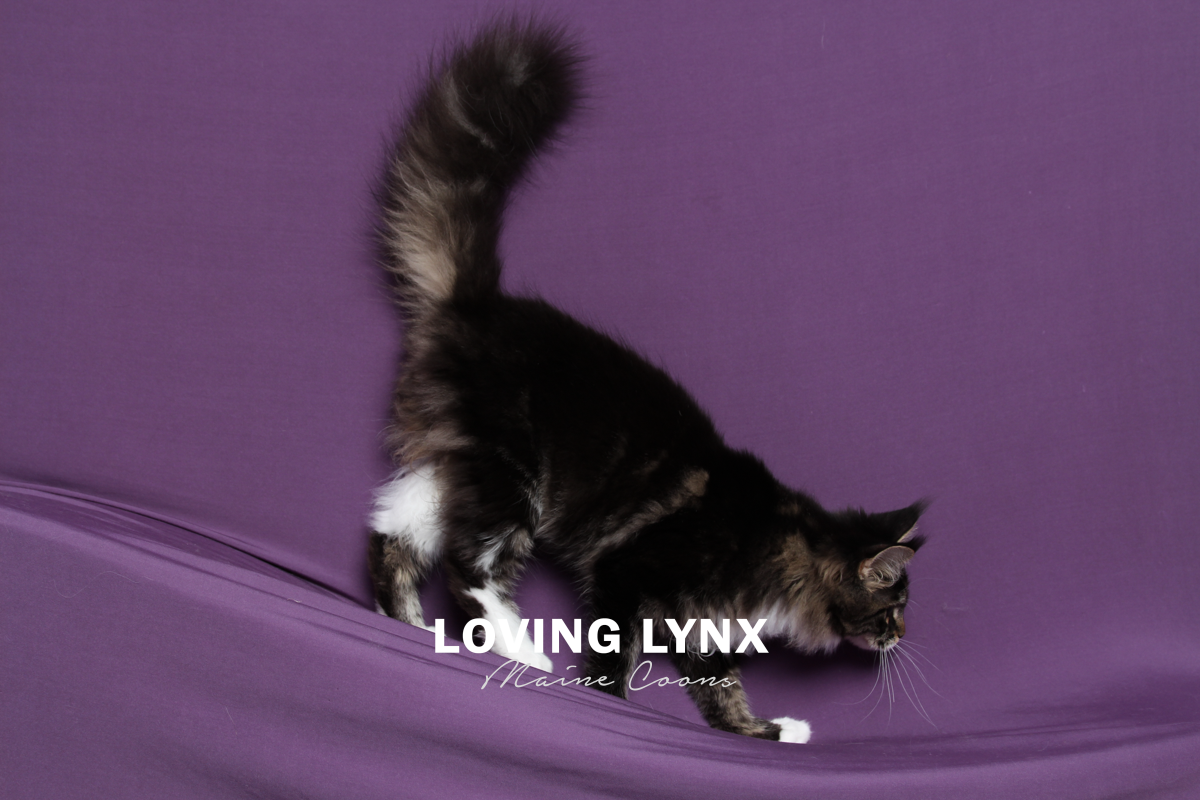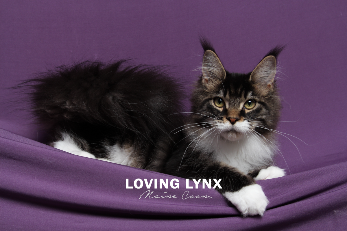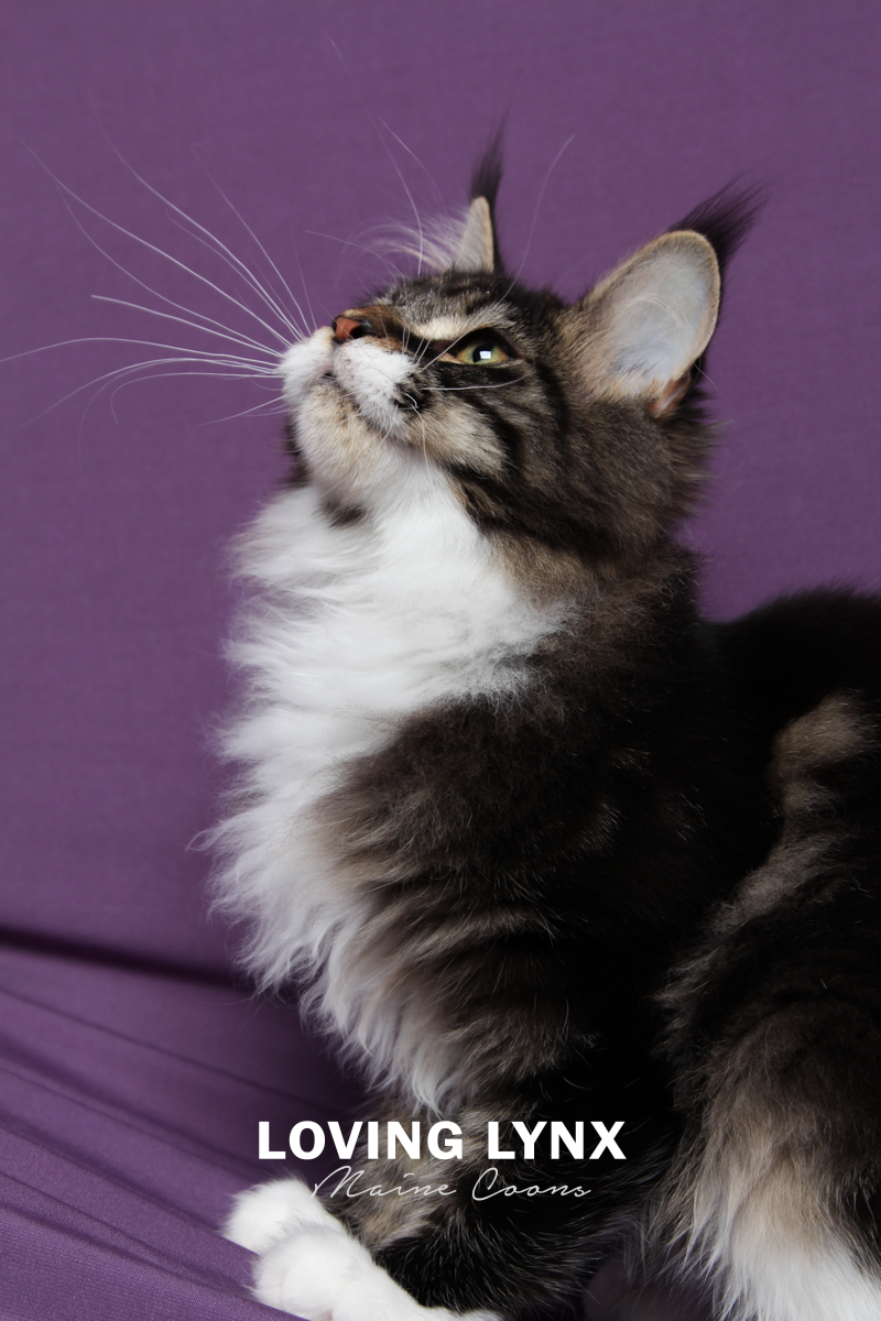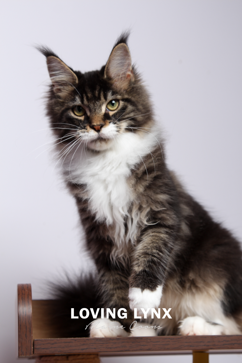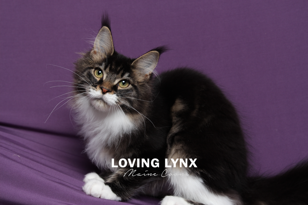 Meet Bella, a Maine Coon kitten who steals hearts with her beautiful brown and white classic coat. This little sweetheart is more than just a pretty face; her gentle and loving nature makes her an ideal companion. With a personality as sweet as her looks, Bella truly represents the essence of a cuddly doll baby, eager to bring joy and warmth to any home. Don't miss the chance to welcome this charming furball into your life and enjoy the love and happiness she brings.