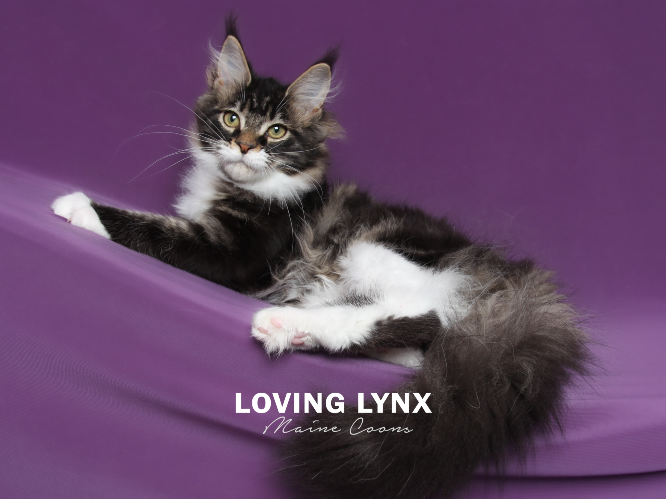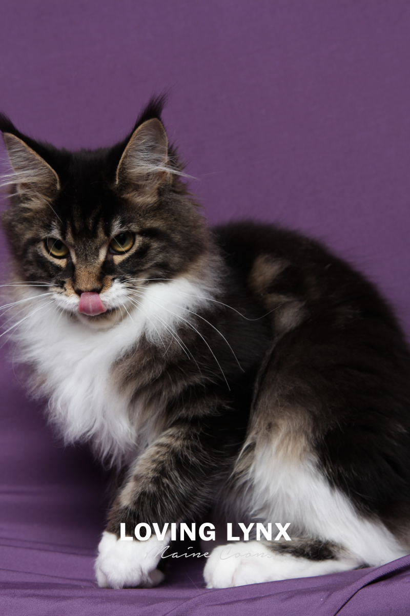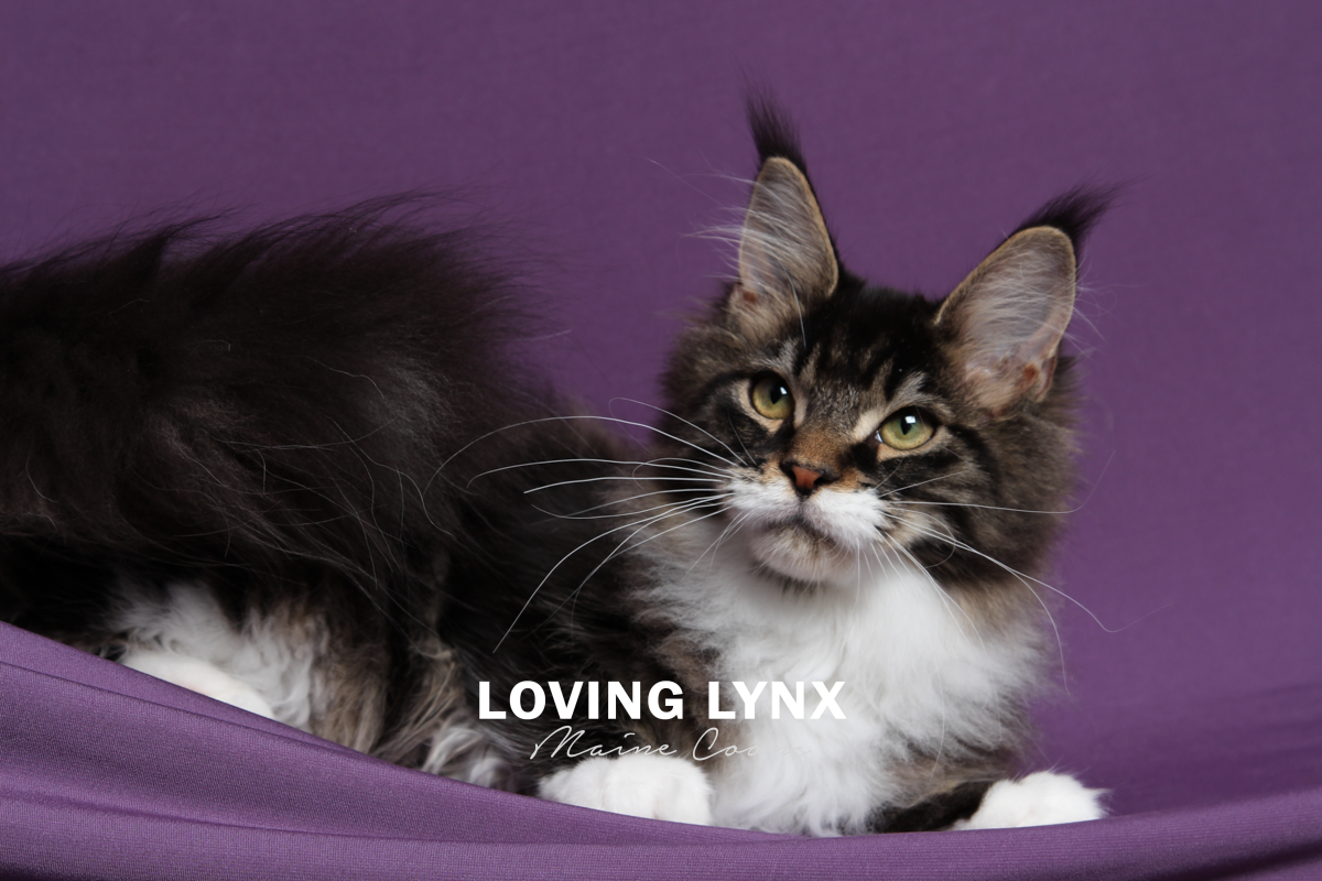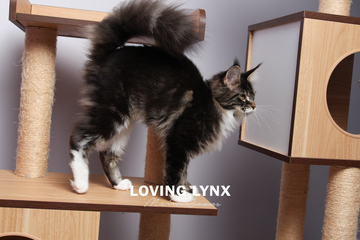 Meet Bella, a Maine Coon kitten who steals hearts with her beautiful brown and white classic coat. This little sweetheart is more than just a pretty face; her gentle and loving nature makes her an ideal companion. With a personality as sweet as her looks, Bella truly represents the essence of a cuddly doll baby, eager to bring joy and warmth to any home. Don't miss the chance to welcome this charming furball into your life and enjoy the love and happiness she brings.