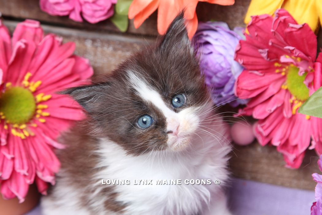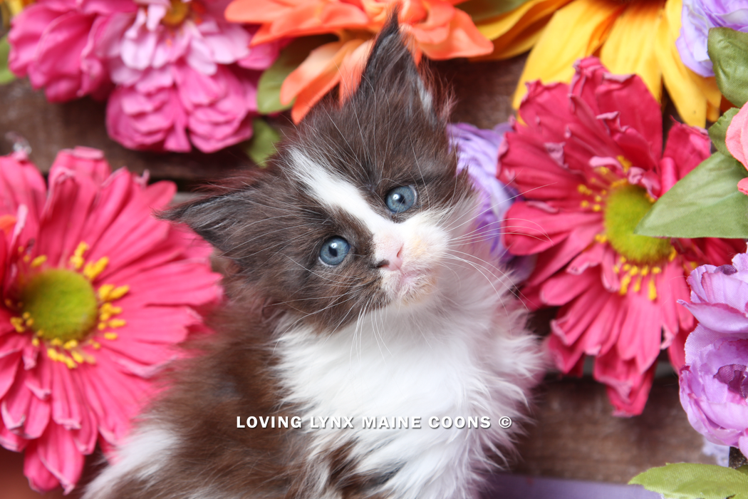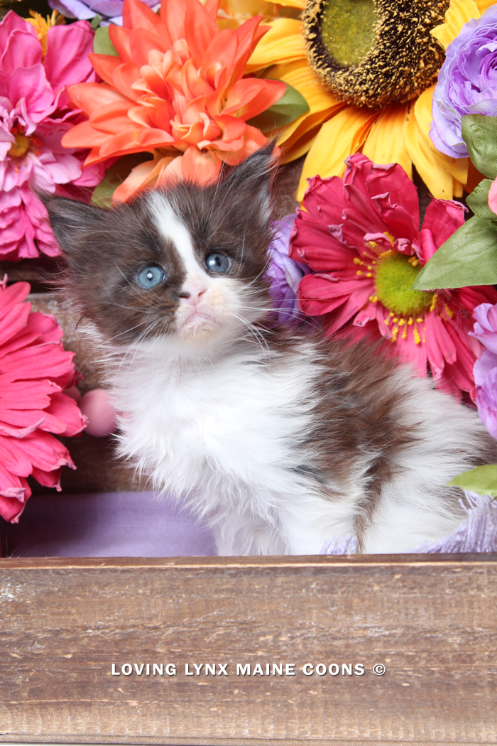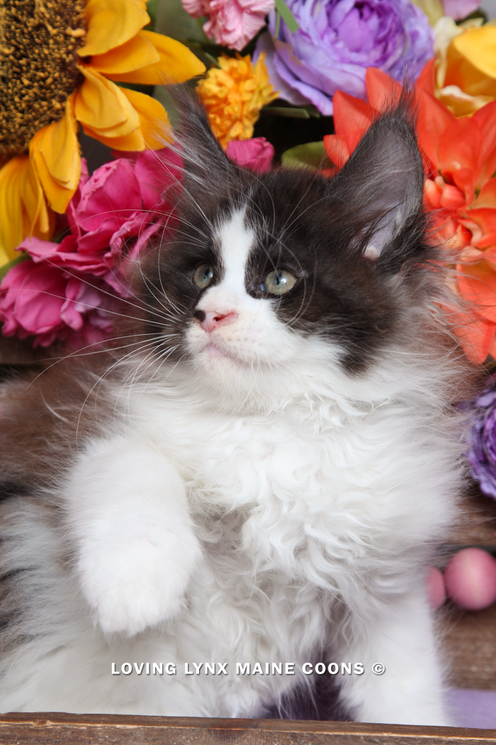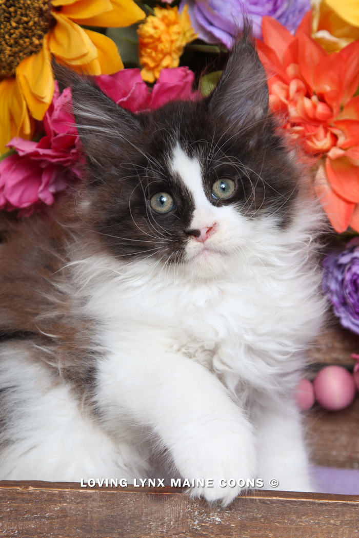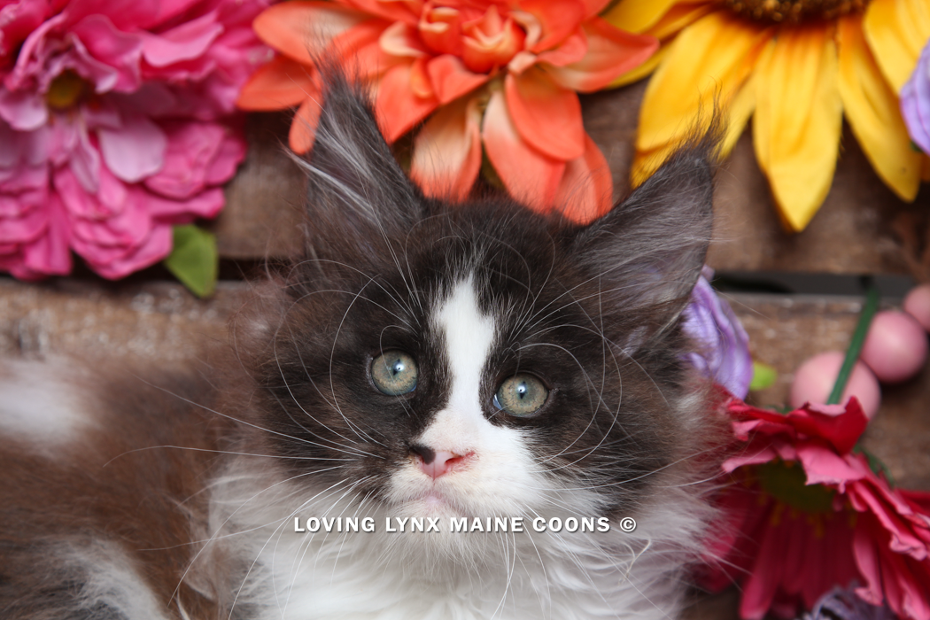 Meet Cow, a smoke with high white male Maine Coon Kitten. He was born July/28/2025, ready to leave around October 13th. STUNNING smoke with high white male! Crystal’s litter has long been awaited and does not disappoint!!! Both boys are premium quality kittens!
